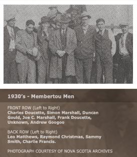 This web-site is a presentation of that unique history, and through the photographs, videos and audio recordings, it provides an opportunity for the viewer to learn more about Membertou, its' people and its' past. Personal glimpses are provided into the lives of the people who developed Membertou and to those individuals who played pivotal roles in bringing the community forward through both positive and difficult periods in their history.